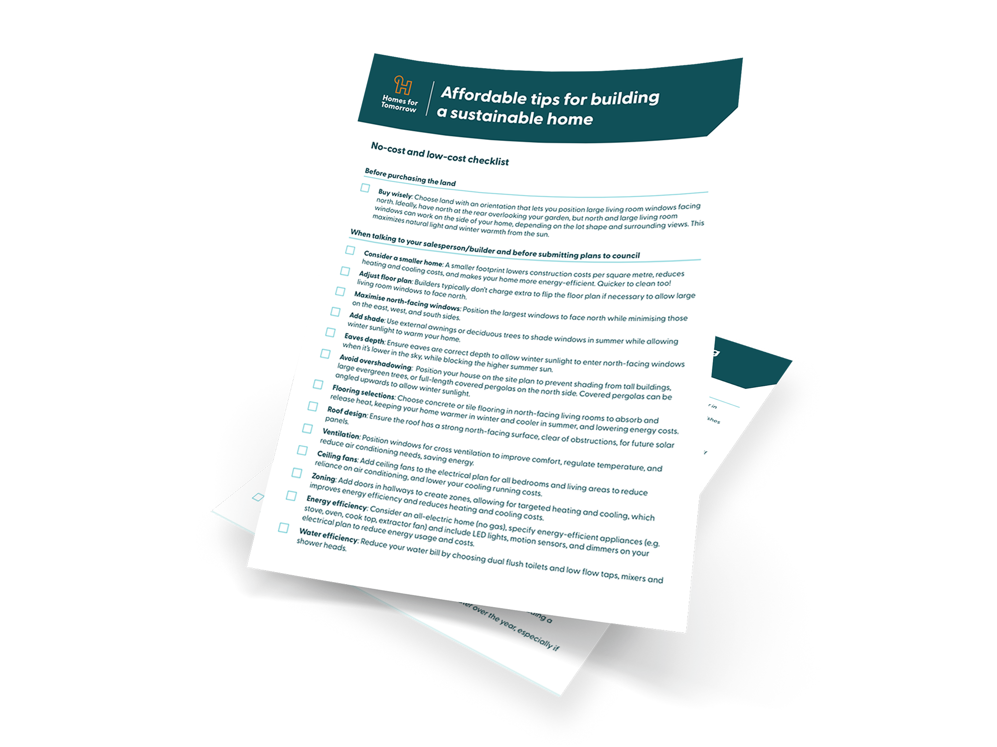 Are you thinking about building or renovating a home? Download this checklist with tips to make your home energy efficient, comfortable and cheaper to run.